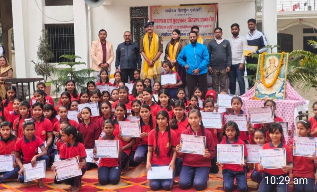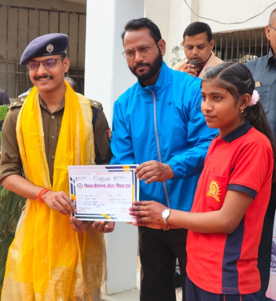 शंभूगंज के मझौली सर्वोदय चिल्ड्रन जूनियर हाईस्कूल के करीब 100 छात्राओं को राष्ट्रीय खिलाड़ी ताइक्वांडो के प्रवीण मिश्रा के द्वारा विगत 10 दिनों से निशुल्क मिशन वीरांगना खेल एवं एजुकेशन ट्रस्ट के माध्यम से निशुल्क मार्शल आर्ट की ट्रेनिंग दिया जा रहा था यह मुहिम पूरे जिले में चलाए जा रही है निशुल्क मिशन वीरांगना खेल एवम शिक्षा ट्रस्ट के माध्यम से इन बहादुर बेटियों को सम्मानित करने पहुंचे आईपीएस ऑफिसर गोल्डी गुप्ता विशिष्ट अतिथि के रूप में मिशन वीरांगना ट्रस्ट की अध्यक्ष शिवानी मिश्रा और शाखा प्रबंधक यूनियन बैंक के मनीष प्रसाद जी रहे इन अतिथियों ने 100 बेटियों को मिशन वीरांगना का सर्टिफिकेट देकर सम्मानित किया राष्ट्रीय खिलाड़ी प्रवीण मिश्रा ने बताया इस ट्रस्ट का उद्देश्य 10 लाख बेटियों को मार्शल आर्ट की ट्रेनिंग देकर इनका नारी सशक्तिकरण के द्वारा बहादुर बनाना और यह मुहिम बहुत तेजी से पूरी जौनपुर में हर ब्लॉक में चल रहा है ips गोल्डी गुप्ता ने कहा आज ऐसी मुहिम को पूरे उत्तर प्रदेश में होना चाहिए क्योंकि मुश्किल समय में यही मार्शल आर्ट उनका काम में आना है और हमारी तरफ से कोई प्रशासनिक सेवा चाहिए बेटियों के लिए तो मैं पूरी तरह से तैयार हूं और उनका दिलवाता भी रहूंगा मिशन वीरांगना ट्रस्ट की अध्यक्ष शिवानी मिश्रा ने कहा हमारा ट्रस्ट मुख्य रूप से नारी सशक्तिकरण के लिए ही बना है और हमेशा इनके लिए निशुल्क सेवा देता रहेगा इसी कड़ी में सर्वोदय चिल्ड्रन जूनियर हाई स्कूल की प्रिंसिपल अरूणा सिंह और प्रबंधक विपिन कुमार सिंह सभी का आभार जताया इस मौके पर श्री आनंद शुक्ला ताइक्वांडो मैनेजमेंट मिश्रा सहित सैकड़ो ग्रामीण और अभिभावक भी मौजूद रहे