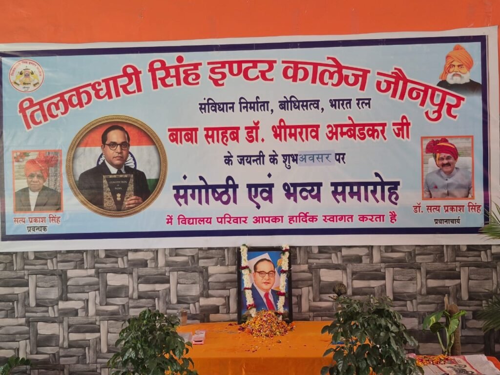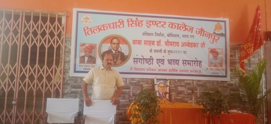 तिलकधारी इंटर कॉलेज के मुख्य भवन में भारतीय संविधान के शिल्पकार ,समानता एवं न्याय के महान प्रवर्तक बाबा साहब डॉक्टर भीमराव अंबेडकर जी की 135वी जयंती के अवसर पर एक संगोष्ठी एवं भव्य समारोह का आयोजन किया गया । सर्वप्रथम प्रधानाचार्य डॉक्टर सत्य प्रकाश सिंह ने दीप प्रज्वलन कर बाबा साहब के चित्र पर पुष्प अर्पित किये, तत्पश्चात समस्त शिक्षक एवं कर्मचारी गण पुष्प के माध्यम से बाबा साहेब को श्रद्धा सुमन अर्पित किये।बाबा साहब के व्यक्तित्व , कृतित्व ,सामाजिक मूल्यो एवं आदर्शो के बारे में विद्यालय के प्रवक्ता डॉ सुनील कुमार सिंह, सुभाष चंद्र, रविंद्र कुमार सिंह पारस नाथ,सत्य प्रकाश सिंह ,मनोज कुमार ,अभिषेक कुमार सिंह, अमित कुमार मिश्र ने विधिवत ढंग से अपने-अपने विचारों के माध्यम से प्रकाश डाला । प्रधानाचार्य डॉक्टर सत्य प्रकाश सिंह ने अपने प्रेरक संबोधन मे कहा कि बाबा साहब के मूल्य एवं आठ प्रेरणादायक विचारों को सभी शिक्षक अपने अंदर आत्मा सात करें, यही उनकी जयंती की सबसे बड़ी शुभकामना होगी । डा. सत्य प्रकाश सिंह ने कहा कि बाबा साहब की शिक्षाएं हमारे हृदय को शक्ति, ज्ञान एवं दृढ़ संकल्प से भर दें । ऐसे महापुरुषों की जयंती को पूरे विद्यालय परिवार को सदैव भव्य समारोह के रूप में मनाना चाहिए । कार्यक्रम के अंत में सभी स्टाफ के साथ प्रधानाचार्य मिष्ठान एवं जलपान ग्रहण किये। कार्यक्रम का संचालन डॉक्टर सुनील कुमार सिंह ने किया ,उक्त कार्यक्रम को सफल बनाने में कपिल देव सिंह, राजेश कुमार सिंह,डा.मंजू सिंह राजीव कुमार सिंह, अभिषेक कुमार सिंह, अंबर कुमार सिंह ने सहयोग प्रदान किया ।अंत में मीडिया प्रभारी बद्रीनाथ सिंह ने सभी का आभार व्यक्त किये,,,