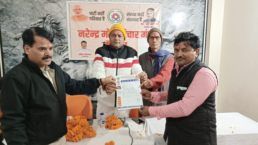 नरेंद्र मोदी विचार मंच एवम् मिशन न्यू इंडिया भारत के पदाधिकारियो को नियुक्ति पत्र वितरण हुआ