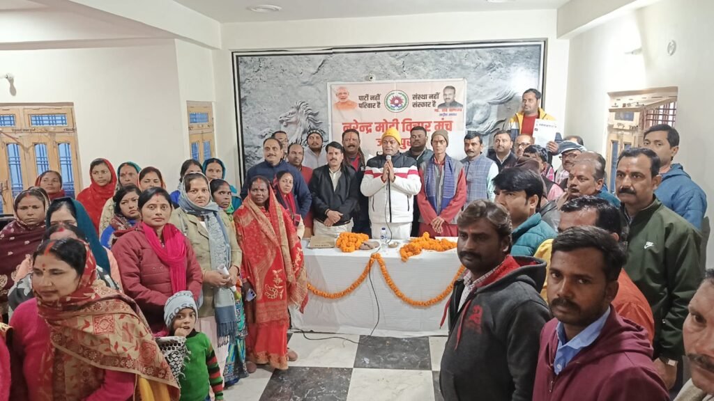 आज नरेंद्र मोदी विचार मंच के पदाधिकारीयों की एक बैठक हुई जिसकी तथा सभी को उनके पैड के साथ नियुक्ति पत्र दिया गया सर्वप्रथम भारत माता के चित्र पर माल्यार्पण कर जयकारा किया गया, आये हुए सभी पदाधिकारियो को महिला पदाधिकारियो द्वारा तिलक लगाकर उनका स्वागत किया गया पदाधिकारियो को उनका नियुक्त पत्र राष्ट्रीय महामन्त्री डॉ. संजय पांडे ने दिया उनको सम्बोधित करते हुए पांडे ने कहा कि आप सभी लोगों को इस मंच से जोड़ने का मुख्य उपदेश यह है कि आप लोग देश के उज्ज्वल भविष्य के लिए तन मन और धन से समर्पित होकर देश विरोधी ताकतों को उनके उदेश्य में सफल होने से रोकें आईएसआई क्रम में सबको संबोधित करते हुए प्रांत सदस्य राजेश श्रीवास्तव ने कहा कि आप लोग देश की एकता अखंडता एवम् संप्रभुता के लिए कार्य करें मुख्य शाखा जिला अध्यक्ष संदीप श्रीवास्तव ने सभी का आभार प्रकट किया साथ ही संगठन के लोगों शपथ भी दिलाई गई भी तथा जिला अध्यक्ष अभिषेक पांडे आई टी सेल ने सभी का स्वागत किया और सभी को शुभकमना दिया तथा कहा के आज के सोशल मीडिया के जमाने में आप लोगों का कार्य जितना ही पार ही होगा पारखी होगा उतना ही देश की एकता एवम अखण्डता के लिए लाभदायक होगा आप लोगों की मेहनत से ही इस मंच की सफलता जुड़ी हुई है इसलिए आप लोग हमेशा चौकन्ने होकर इस मंच को गति प्रदान करें कार्यक्रम का संचालन अमर श्रीवास्तव ने किया कार्यक्रम मैं जिले के सभी पदाधिकारी गण उपस्थित रहे जिसमें विचार मंच के मुख्य शाखा के पदाधिकारी तथा विचार मंच के सूचना प्रौद्योगिकी शाखा तथा महिला शाखा अल्पसंख्याक शाखा तथा अन्य सभी शाखाओं के लोग उपस्थित रहे