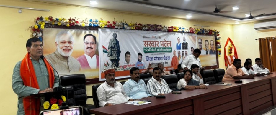 जौनपुर: लौह पुरुष सरदार बल्लभ भाई पटेल की 150वीं जयंती वर्ष के उपलक्ष्य में भारतीय जनता पार्टी के जिला कार्यालय पर जिलाध्यक्ष पुष्पराज सिंह के अध्यक्षता में बैठक आयोजित की गई सर्व प्रथम कार्यक्रम का सुभारंभ पार्टी के पुरोधा पं दीनदयाल उपाध्याय एवं श्यामा प्रसाद मुखर्जी के चित्र पर माल्यार्पण कर किया गया उसके बाद वंदेमातरम गीत गाया गया।