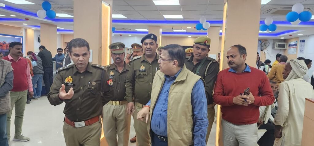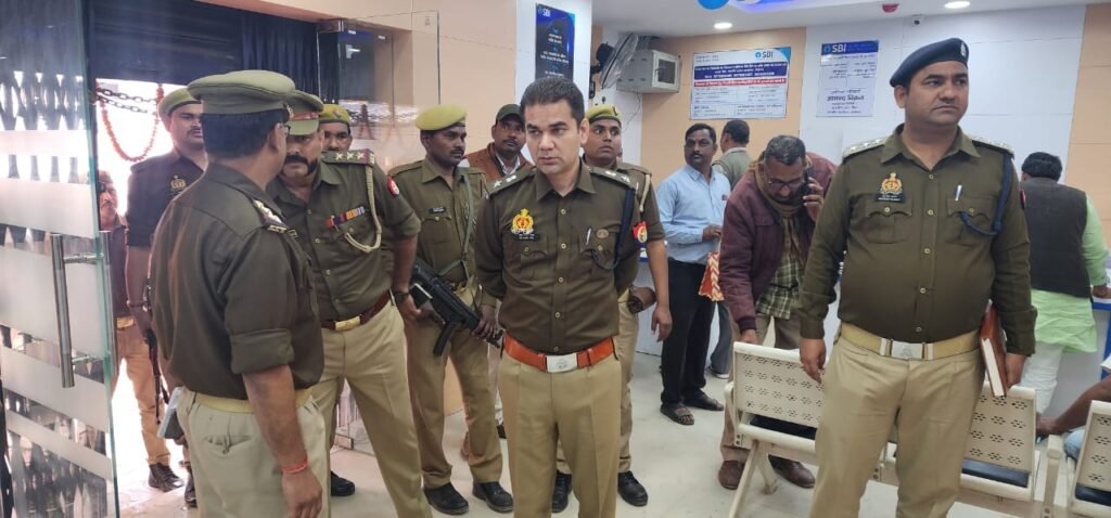 नवागत आरक्षी अधीक्षक डॉ अजयपाल शर्मा जनपद के लगभग सभी थाना क्षेत्रों का औचक निरीक्षण करते हुए सोमवार को जनपद के स्टेट बैंक मुख्य शाखा सिविल लाइन पर निरीक्षण हेतु दलबल के साथ पहुंचे। पुलिस फोर्स के पहुंचते ही बैंक में अफरा—तफरी मच गई। वहां पर उपस्थित सुरक्षाकर्मियों को सावधानी एवं सुरक्षा सम्बन्धित देते हुये आरक्षी अधीक्षक आगे चले गये। निरीक्षण के बाद पुलिस अधीक्षक मयफोर्स पैदल मार्च करते हुए पुलिस अधीक्षक कार्यालय पहुंचे। पैदल मार्च में पुलिस अधीक्षक के साथ अपर पुलिस अधीक्षक नगर डा. संजय कुमार, पुलिस अधीक्षक ग्रामीण शैलेन्द्र सिंह, क्षेत्राधिकारी नगर कुलदीप गुप्ता, थानाध्यक्ष लाइन बाजार आदेश त्यागी, सिविल लाइन पुलिस चौकी प्रभारी गिरीश मिश्रा सहित पुलिस विभाग के अन्य अधिकारी एवं आरक्षी उपस्थित रहे।
