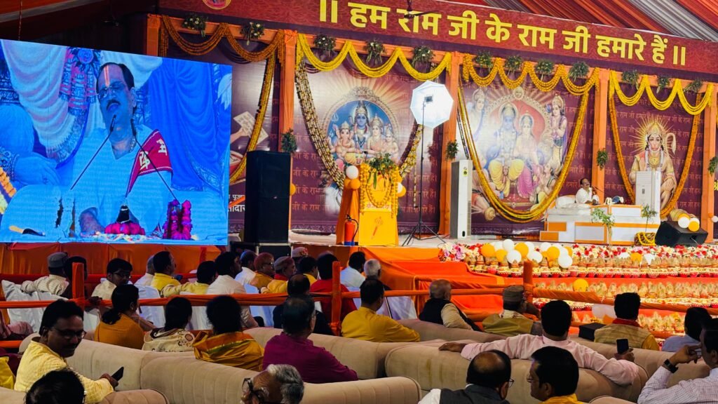 श्रीमहाराज ने कहा कि राम साक्षात परमात्मा हैं। राम भगवान हैं जिनके पास पांचों तत्वों का नियंत्रण है। उन्होंने कहा कि भोले बाबा देवताओं के देव हैं, उन्हें असुर भी पूजते थे। श्रीमहाराज ने कहा कि वर्ष में एक बार तीर्थ जरूर करना चाहिए। तीर्थ करने से भगवान में मन लगा रहता है। ‘तीरथ करो जवानी में बूढ़ापा किसने देखा है’ गीत पर महिलाएं पंडाल में थिरकती नजर आयीं। भगवान किसी से रूष्ट नहीं होते हैं। उनकी कृपा हमेशा भक्तों पर बनी रहती है। सिर्फ भक्ति करने अलग अलग तरीका होता है जो भक्त समर्पित होता है उसे शंका नहीं लगती है लेकिन जो समर्पित नहीं होता है उसे हमेशा भक्ति को लेकर संशय बना रहता है। श्रीमहाराज ने कहा कि अगर भगवान वन नहीं गए होते तो पुरुषोत्तम राम नहीं कहलाते। वह वन नहीं गए थे वह तो तीर्थ का बहाना था। उन्होंने कहा कि सत्संग से प्यार करना सीखें, जीवन का उद्धार करना सीखें, धन दौलत साथ नहीं जाएगा, अकेला ही जाना है, किसी को खुश करने की फिराक में मत रहिए, अपने खुश रहने की सोचिए। यह रामकथा सेवाभारती के नेतृत्व में चल रही है।