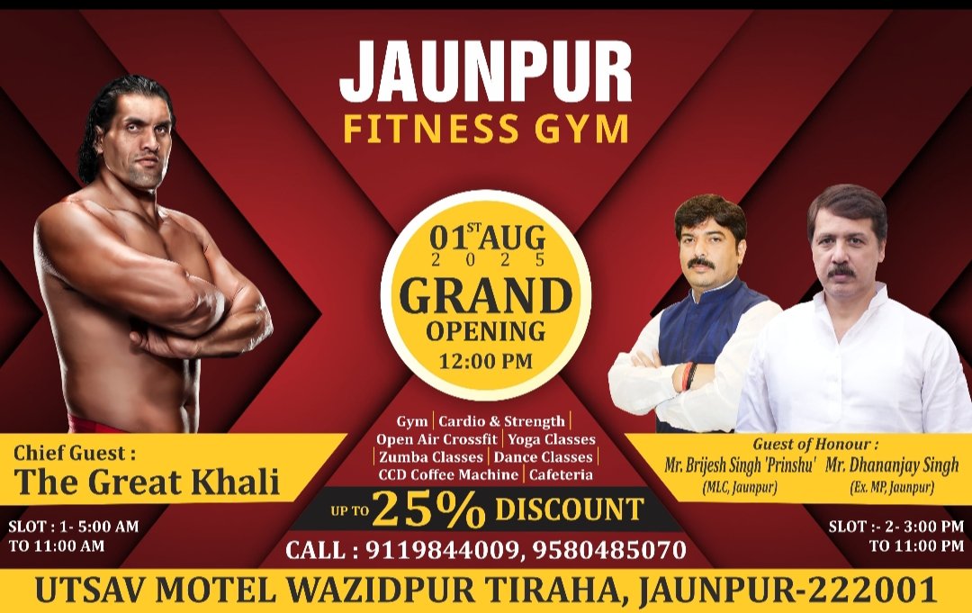 नगर के वाजिदपुर तिराहा स्थित उत्सव मोटल में जौनपुर फिटनेस जिम का उद्घाटन 1 अगस्त 2025 को दोपहर 12 बजे से होगा। जिसमें डब्लूडब्लूई में पहले भारतीय मूल के विश्व चैम्पियन रहे पहलवान व अभिनेता द ग्रेट खली का आगमन होगा। जहां जौनपुर फिटनेस जिम का शुभारम्भ द ग्रेट खली, पूर्व सांसद धनंजय सिंह एवं एमएलसी बृजेश सिंह प्रिंशू करेंगे।