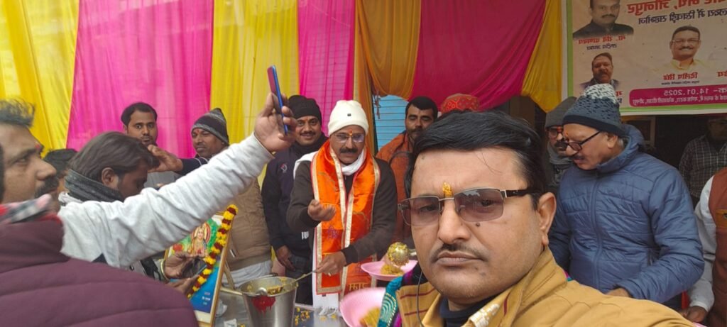 नगर कोतवाली के पास हनुमान मंदिर के बगल में संक्रांति का कार्यक्रम अयोजित किया गया मंच की महिला साथियों के द्वार सभी को चंदन लगाकर कार्यक्रम का शुभारंभ किया गया उसके बाद नगर कोतवाल ने फ़िता काटकर एवम भारत माता के चित्र के पास दीप प्रज्वलित कर कार्यक्रम का उद्घाट्न किया इस अवसर पर नगर कोतवाल ने सभी को मकर संक्रांति की हार्दिक शुभकमना दीया तथा अभिषेक पांडे जिलाध्यक्ष इट सेल ने जनपद वासियों को मकर संक्रांति के उत्सव के बारे में बताया के यह हमारे सनातन धर्म में एक महतवपूर्ण तिथि है जिसमें स्नान ध्यान पूजन एव दान का विशेष महत्व होता है आज के दिन प्रयागराज में संगम तट पर स्नान का एवीएन दान देने का अत्यंत ही अधिक महत्व होता है मंच के जिलाध्यक्ष संदीप श्रीवास्तव ने सबका आभार व्यक्त किया जिलाध्यक्ष ने कहा कि यह त्यौहार आपके भाईचारे का प्रतीक होता है जिसमें हम लोग एक दूसरे से लाई चुरा बांट कर खाते हैं और साथ में मिलकर पतंग उड़ा कर अपनी एकता को बढ़ावा देते हैं। इस अवसर पर मंच के सभी साथी संगठन के सभी लोग उपस्थित रहे जिसमें जिला महामंत्री गणेश साहू जी पवन प्रजापति जी जिला उपाध्यक्ष संदीप शेट्टी की अनीश मिश्रा जी श्रेयांस मिश्रा जी नरेंद्र जी शैलेंद्र जी it सेल जिलाध्यक्ष अभिषेक पांडे पत्रकार संघ जिलाध्यक्ष दीपक श्रीवास्तव जी मुस्लिम मंच के जिलाध्यक्ष सैफ अली खान जी साथ में महिला शाखा जिला महामंत्री गीता जी बबीता जी सलोनी जी जिला उपाध्यक्ष बिट्टू जी सलोनी जी महिला मंच की टीम का विशेष सहयोग रहा